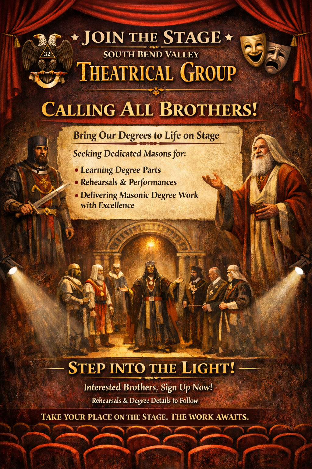 Because we are in the formative stages, those who join the Theatrical Guild now will have the unique opportunity to define the "South Bend style" of performance for years to come. We aren't just putting on a production; we are providing the moral and philosophical education that is the hallmark of the Scottish Rite.